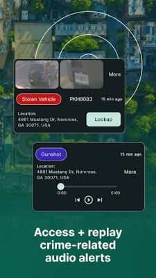 Real-Time Audio Detection Alerts: Instantly access and replay crime-related audio clips such as gunshots or sideshow sounds, pinpointing the exact location directly within the app for timely response.