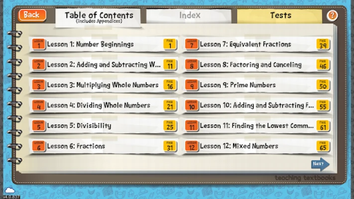 • the digitized version of the printed Teaching Textbooks Pre-Algebra textbook (with a search feature and a hyper-linked index)
